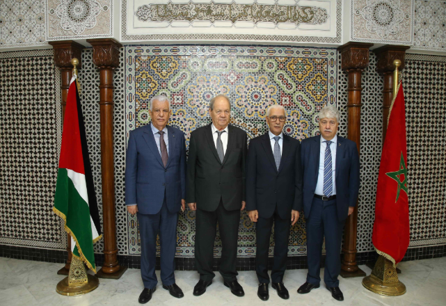 استقبل "رشيد الطالبي العلمي"، رئيس مجلس النواب، اليوم الجمعة 17 أكتوبر الجاري بالرباط، وفدا فلسطينيا يضم "روحي فتوح"، رئيس المجلس الوطني الفلسطيني، و"أحمد مجدلاني"، عضو اللجنة التنفيذية لمنظمة التحرير الفلسطينية، وذلك في إطار زيارة رسمية يقوم بها الوفد للمملكة المغربية.